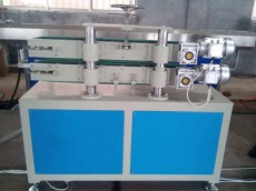 该装置采用轨道式皮带输送。镶入采用了不变向连续输送的方式,有PLC控制输送速度,保证了不同线速度时滴头间距的设定,滴头连续通过机头体时得到充分预热,使滴头与管壁粘结牢固。